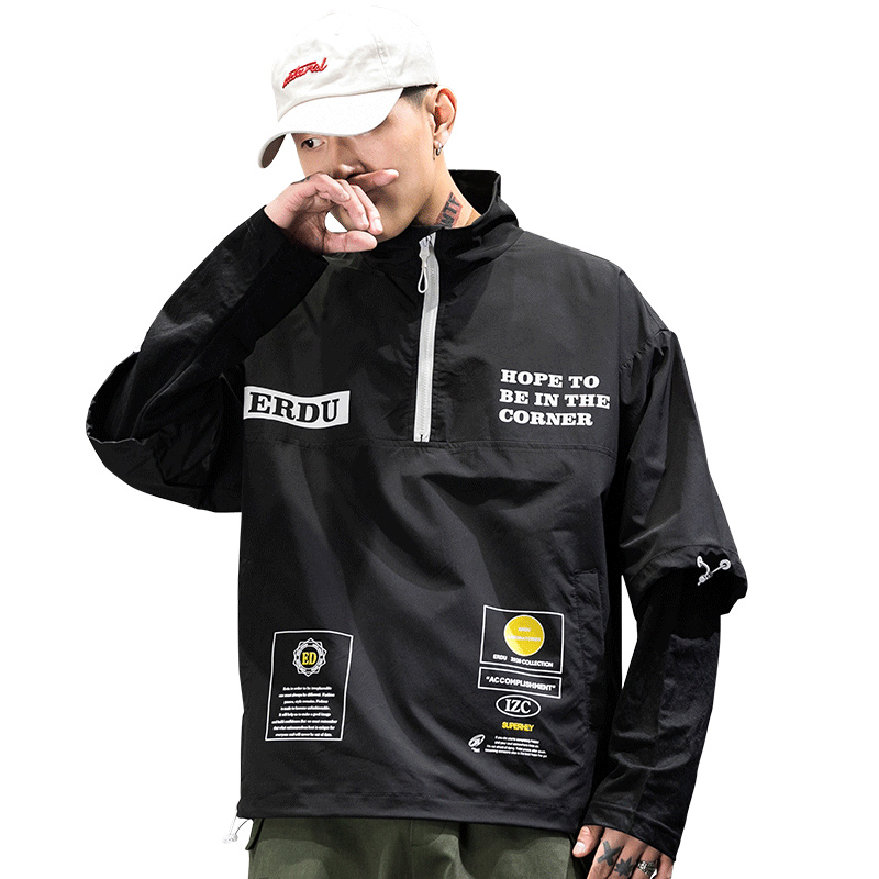 Men's Loose Casual Handsome Fake Two Half Zipper Sweater