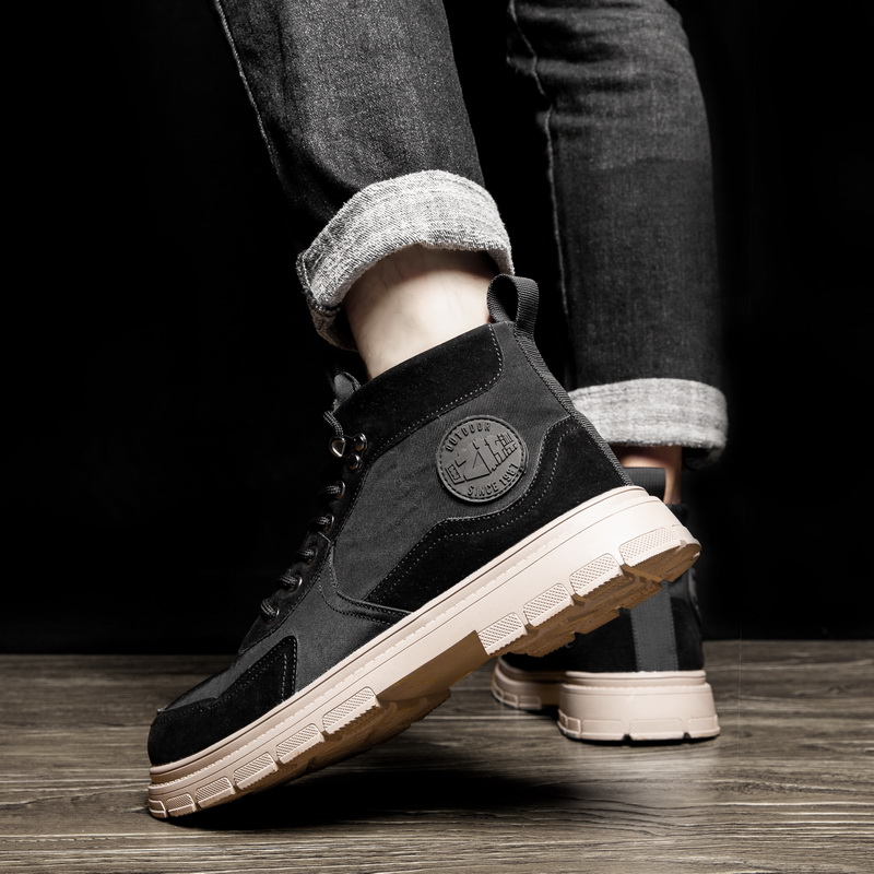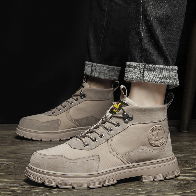 Men Leather Boots Fashion Men's Shoes High Top Soft Leisure Footwear Ankle Martin Boots Lace-up Work Moccasins Casual