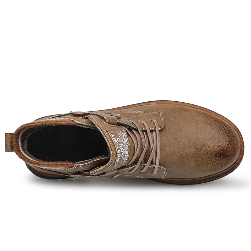 Men Leather Boots Fashion Men Shoes Soft Leisure Footwear Lace-up Ankle Martin Boots Casual Flat High Top Moccasins Work