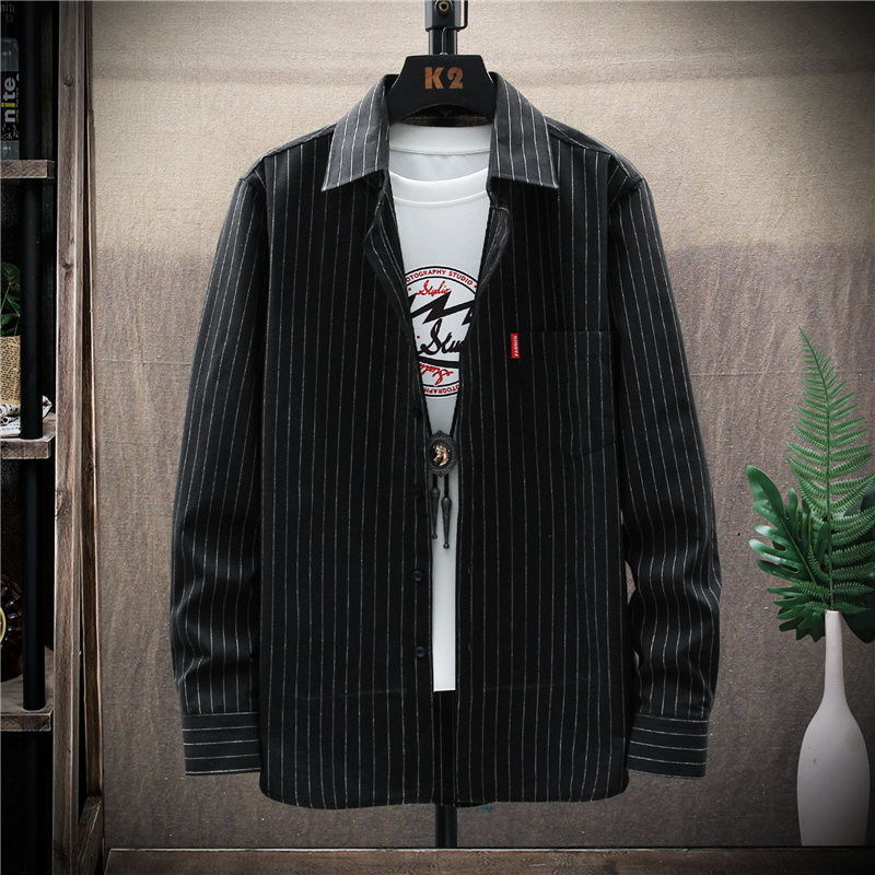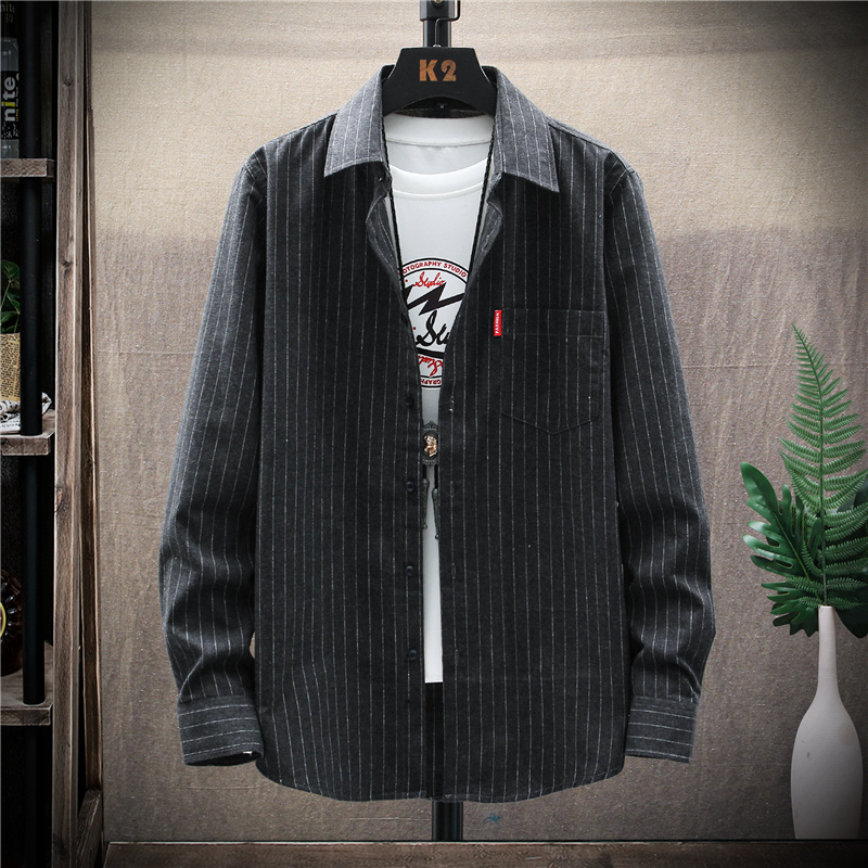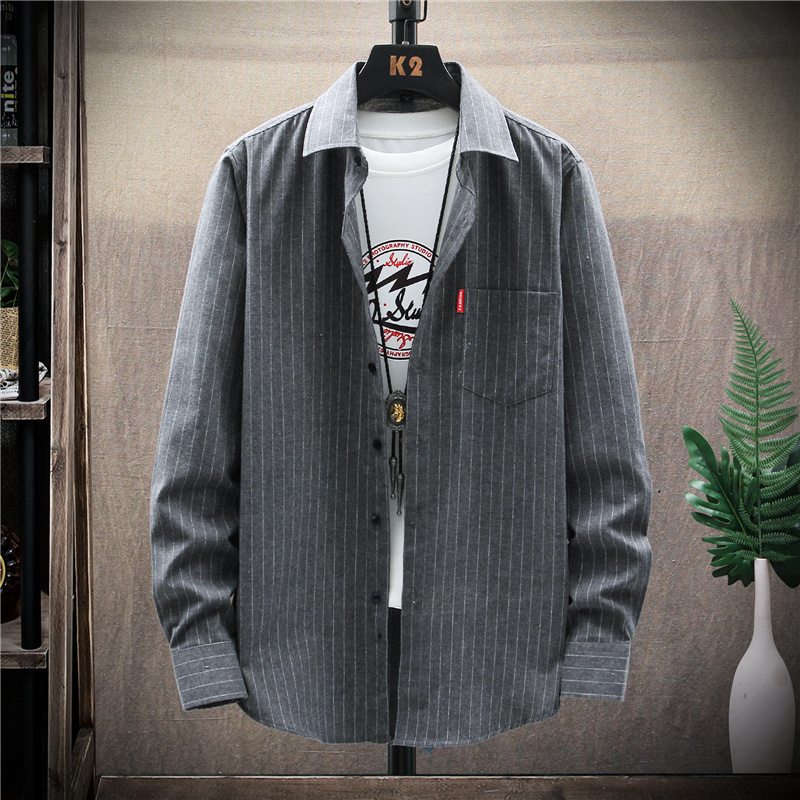 Men's New Trendy Handsome Casual Striped Long-sleeved Shirt