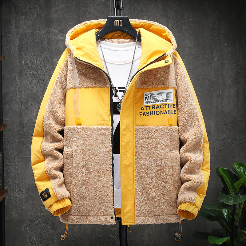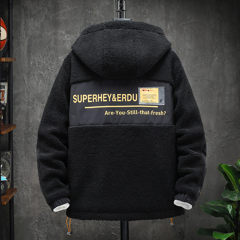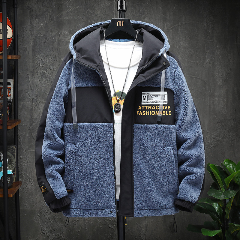 Men's Winter Faux Lamb Wool Hooded Jacket