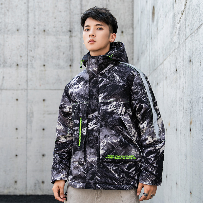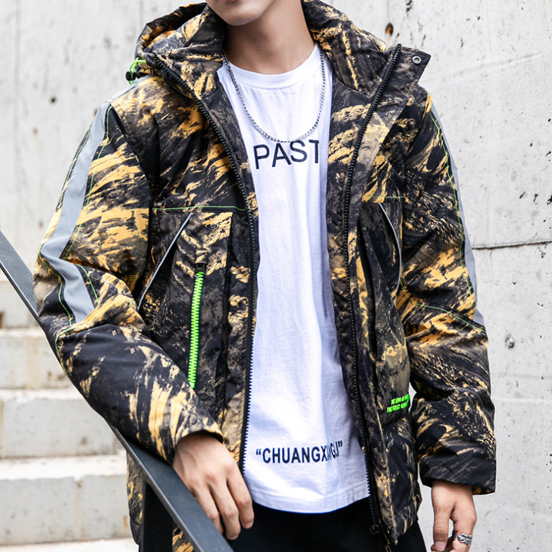 Men's Winter Multiple Pocket Camouflage Hooded Down Jacket