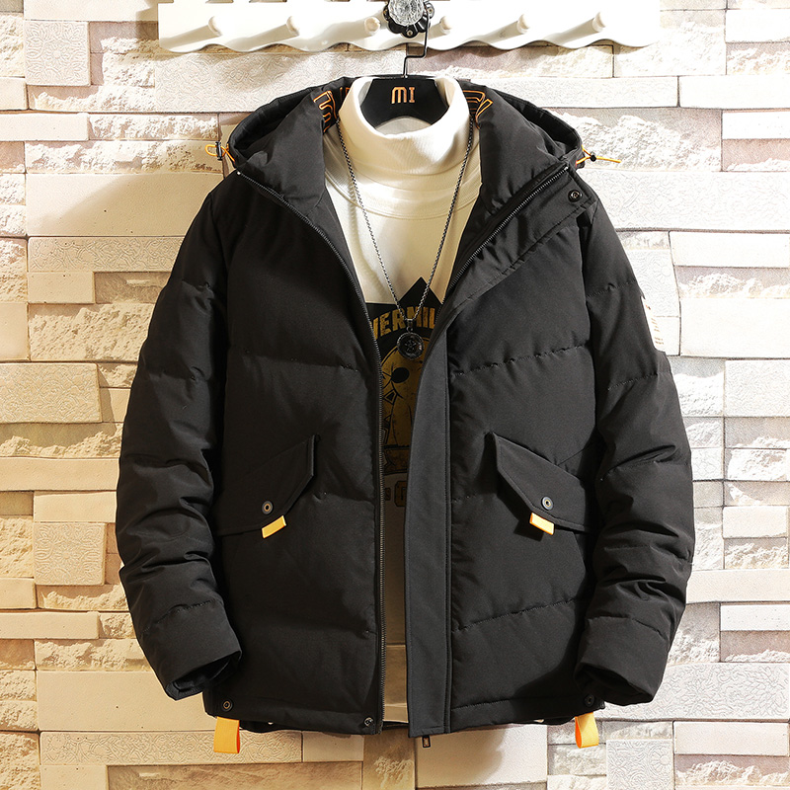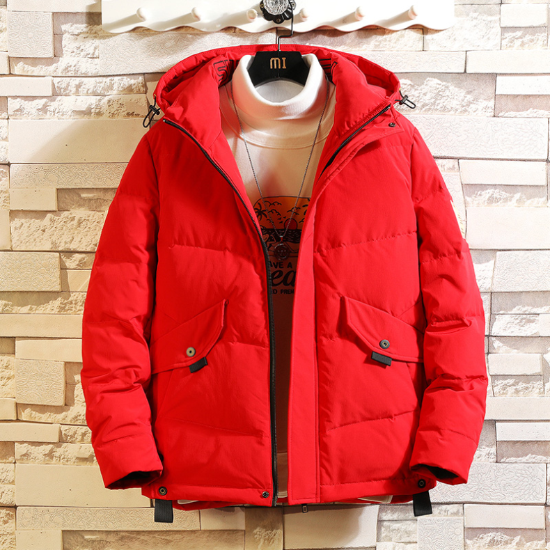 Men's Winter Three-dimensional Pocket Solid Color Hooded Down Jacket